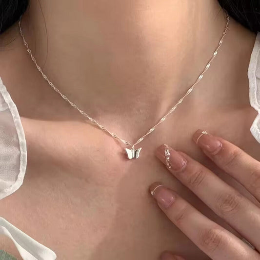 925 pure silver butterfly minimalist style necklace